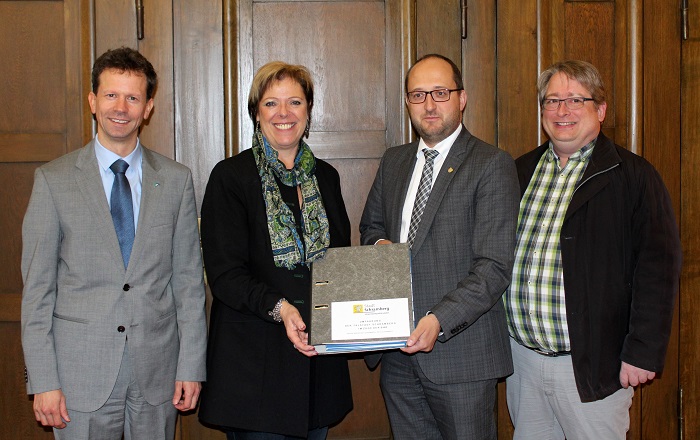 CDU-Fraktionsvorsitzender Clemens Maurer, SPD-MdL Sabine Wölfle, OB Thomas Herzog und SPD-Vorsitzender Mirko Witkowski. Schramberg (pfa). Auf Einladung der SPD Schramberg besuchte die stellvertretende Vorsitzende der SPD-Landtagsfraktion, Sabine Wölfle, zum Thema Talumfahrung B462 das Schramberger Rathaus. Wölfle sitzt seit dieser Legislatur im Verkehrsausschuss des Landtags. Am Austausch nahmen Oberbürgermeister Thomas Herzog, SPD-Ortsvereinsvorsitzender und Gemeinderat Mirko Witkowski sowie CDU-Fraktionsvorsitzender Clemens Maurer teil.