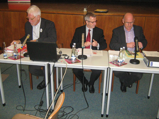Diskutieren auf Einladung der SPD: Rainer Kaufmann (v.l.), Moderator Herbert Zinell, Minister Winfried Hermann. Schramberg (mp). Die Podiumsdiskussion der Schramberger SPD zu „Stuttgart 21 war eines der Highlights im politischen Veranstaltungskalender der Stadt. Über 150 Besucher waren am Sonntag,20. Novmeber, in die Aula des Schramberger Gymnasiums gekommen, um sich mit den Argumenten von Rainer Kaufmann (SPD) und Landesverkehrsminister Winfried Hermann (Bündnis 90/die Grünen) für und gegen das Mammutprojekt auseinanderzusetzen. Es war eine der ganz seltenen Veranstaltungen im Land, bei denen wirklich pro und contra diskutiert wurde. „Bei allen anderen Veranstaltungen, zu denen ich eingeladen wurde, haben die Befürworter eine Teilnahme abgelehnt“, stellte Winfried Hermann fest.