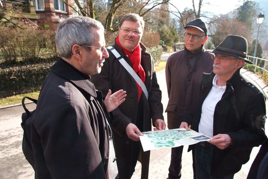Der Stadtspaziergang begann im Park der Zeiten. 2,3 Millionen Euro seien in den Park investiert worden, berichtete OB Zinell. „Da kannst Du zurecht stolz drauf sein“, kommentierte Eisenhardt. Vom Park hat man auch einen Blick auf das momentan wichtigste städtebauliche Projekt in Schramberg. Aktuell bereiten Bagger den Baugrund für das neue Gebäude der Sparkasse vor. Einer möglichen Tiefgarage erteilte Zinell aufgrund technischer Probleme noch einmal eine Absage. Bei zwei bis drei Millionen Euro Kosten, hätte man wichtige Projekte auf Eis legen müssen, so der Oberbürgermeister.